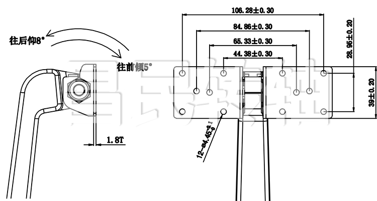 电脑显示屏转轴,转轴和底座一体化,底座使用锌合金压铸件,表面镀锘,外观精美大方,大江平台_大江(中国)转轴可整体提供底座转轴方案。
