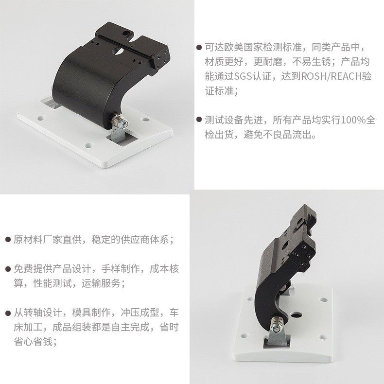 产品特点:显示器底座阻尼转轴,采用经典的双边垫片结构,使显示器屏幕更加稳定牢固,转动过程中不会晃动。 使用方法:显示器底座转轴的钣金件上有两个螺丝孔,锁付在屏幕背部,中间轴件也带有螺丝孔,锁付与底座支架上即可使用。